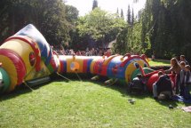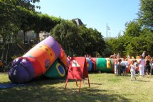 An einem Ende in die Riesenraupe hineinkrabbeln und nach einer Hindernisstrecke erfolgreich aus der anderen Seite wieder herauspurzeln.