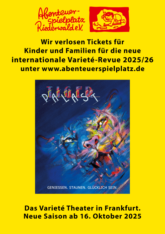 Der Abenteuerspielplatz Riederwald e. V. und der Frankfurter Varietéverein e.V. verlosen wieder Freikarten für Kinder und Eltern für das Tigerpalast Varieté Theater der Herbst-/ Wintersaison!