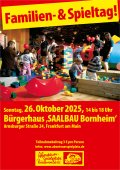 Der Saalbau Bornheim verwandelt sich wieder in einen Hallenspielplatz. An unserem Familien- & Spieltag