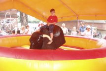 Rodeoreiten auf einem mechanischem Bullen mit unterschiedlichen Schwierigkeitsgraden.