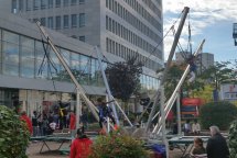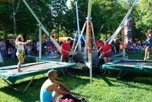 Das mobile Bungy-Trampolin ist auf einem Anhänger montiert, der Teil der Aktion ist. Vier Sprungflächen können gleichzeitig genutzt werden. Mindestgewicht der springenden Person: 20 kg!