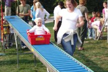 Die Rollenrutsche ist mit Auslaufteppich ca. 15 m lang, an den Seiten muss mindestens 2 m Platz frei bleiben!