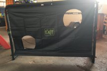 Die Torwand wird im aufgebauten Zustand inkl. 2 Fußbälle transportiert.