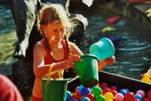 In einem großen Wasserpool können die Kinder unter pädagogischen Gesichtspunkten das Element Wasser spielerisch kennen lernen. Rohrleitungen werden zu einem regelrechten Labyrinth mit unterschiedlichem Gefälle zusammen gesteckt. Mit Pumpen, Eimern, Gießkannen und anderen Hilfsmitteln gerät das Wasser in Bewegung. Schwimmbälle zeigen die Laufrichtung und Geschwindigkeit des Wassers an.