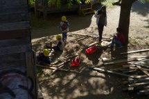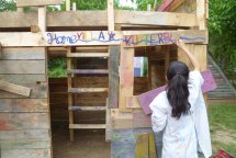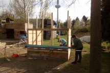 Wir bauen eine Kinderwelt, die daran erinnern soll, dass in den ehemaligen Housing Areas in unserer Nachbarschaft jahrzehntelang amerikanische Kids gewohnt und gespielt haben. Wir bauen eine Wild West Stadt entlang der Mainstreet: in einem Haus wohnt der Sheriff und in einem anderen ist der Saloon. Im Ballroom tobt ein rauschendes Fest und auf der Freilichtbühne wird gerade die neueste Zirkusshow aufgeführt. Manchmal treiben bei uns friedlich nebeneinander Cowboys und Indianer ihre Spiele, während andere Kids gerade mit einem Raumschiff einen unserer Berge erobern und wieder andere im gleichen Moment S.O.S.-Rufe aussenden, da sie von Postkutschenräubern um ihr Geld erleichtert werden.