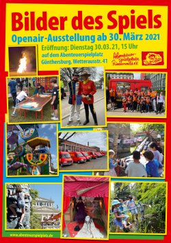In Zeiten der Pandemie sind Museen geschlossen und auch die Kunst kommt zu kurz. Innovativ wird hier der Verein Abenteuerspielplatz Riederwald aktiv mit seiner geplanten Open Air-Ausstellung „Bilder des Spiels“, in der über 100 Fotografien aus dem Alltag der Spielmobile und seiner 3 pädagogisch betreuten Abenteuerspielplätze gezeigt werden. Die Fotos sind großformatig an der äußeren Umzäunung des Abenteuerspielplatzes Günthersburg in der Wetteraustraße 41