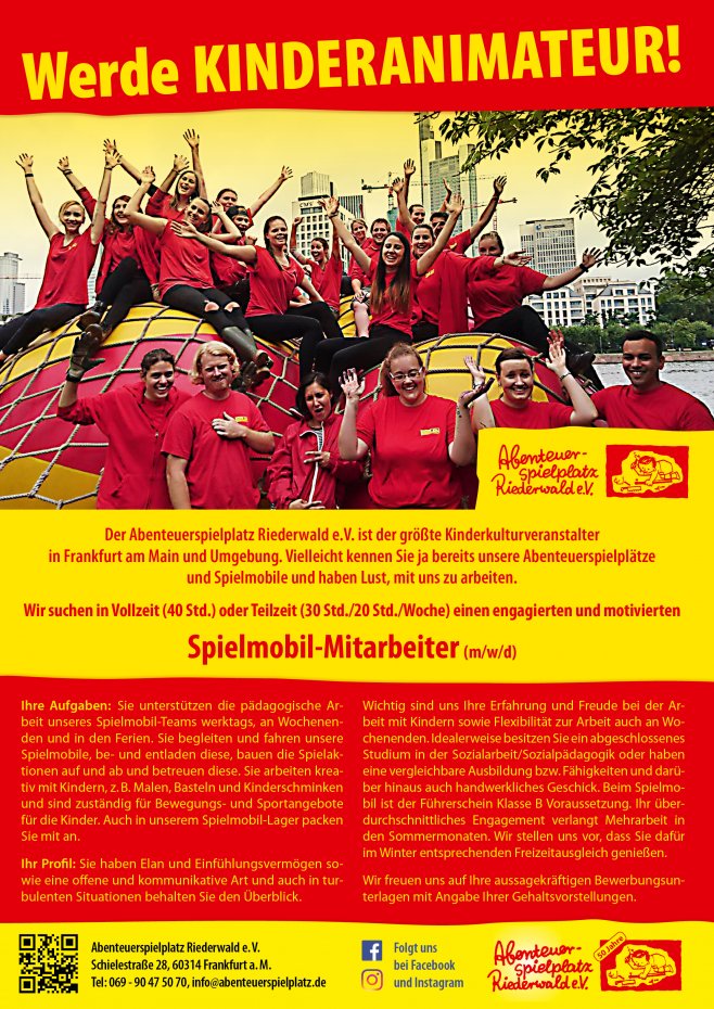 Gerne könnt ihr Eure Bewerbung direkt an Abenteuerspielplatz Riederwald e.V. per E-Mail: spielmobile@abenteuerspielplatz.de schicken oder ladet euch unseren Steckbrief runter, füllt diesen aus und sendet ihn ebenfalls an uns per E-Mail. wir freuen uns auf eure Bewerbungen!